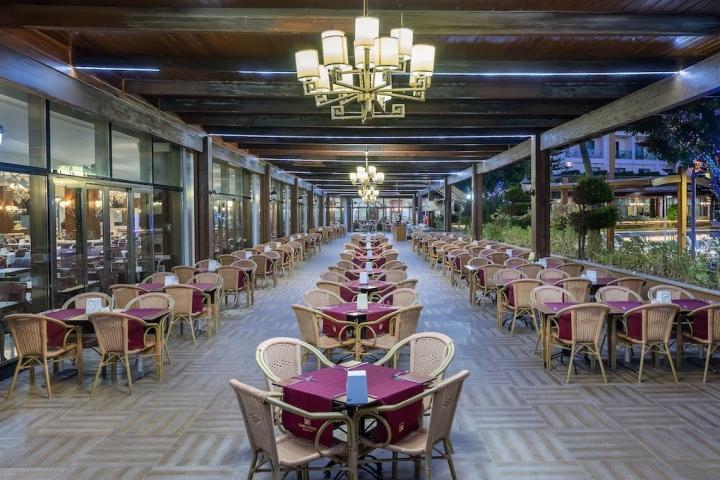 Usluga u hotelu je Ultra All Inclusive, samoposluživanje - izbor više jela po hotelskim pravilima u glavnom restoranu: doručak, kasni doručak, ručak, večera i ponoćna užina, lokalna i poneka uvozna alkoholna i bezalkoholna pića, turske palačinke i sladoled u određeno doba dana.