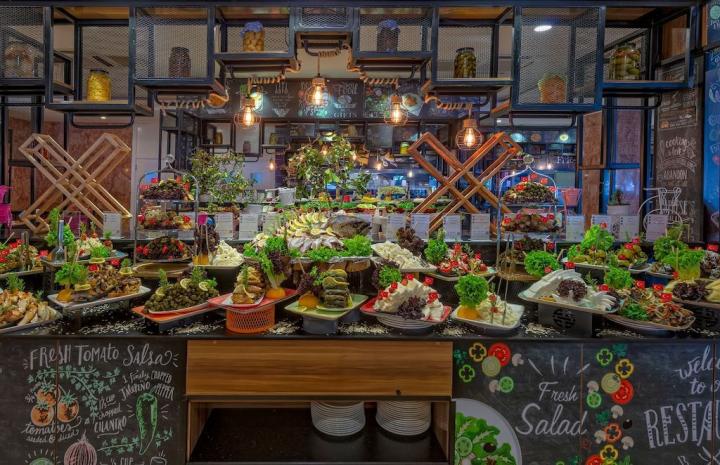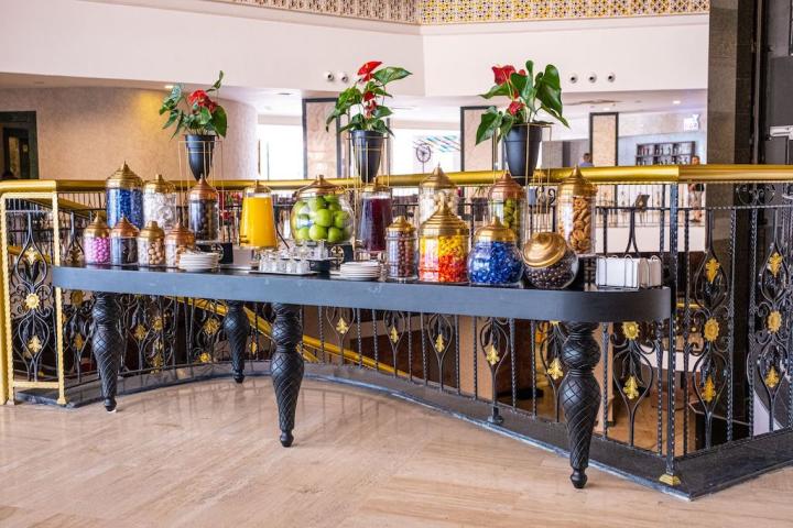 Usluga u hotelu je All Inclusive - doručak, ručak i večera (samoposluživanje - izbor više jela po hotelskim pravilima). U konceptu su i užine, sladoled i lokalna alkoholna i bezalkoholna pića. Hotel u ponudi ima glavni restoran, snack restoran i tri a la carte restorana. Gostima su na raspolaganju i barovi - Lobby Bar, Pool Bar, Desert Bar, Chillout Bar i Disco Bar.