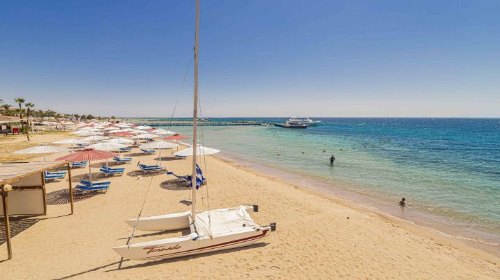 Nalazi se na lepoj peščanoj plaži, dugačkoj 200m, gde je jedan manji deo sa koralnim grebenom a jedan deo je kupališna zona sa plitkom vodom. Gosti hotela mogu bez doplate da koriste ležaljke i suncobrane.