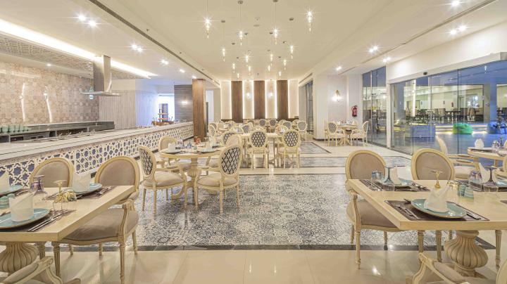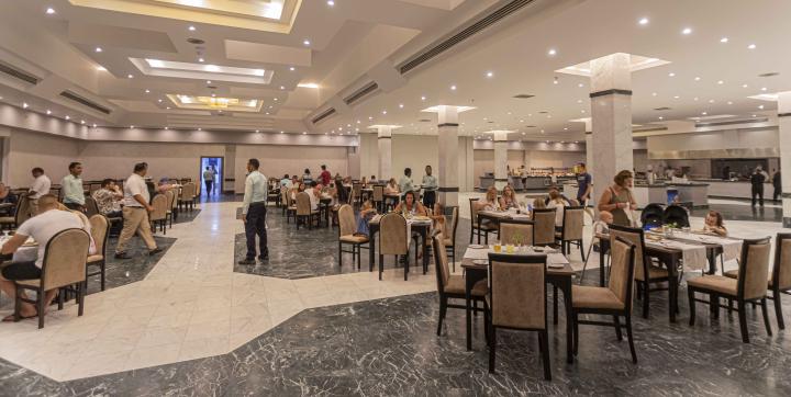 Usluga u hotelu je All inclusive - rani doručak, doručak, kasni doručak, ručak, večera, kasna večera (samoposluživanje - izbor više jela po hotelskim pravilima). Hotel u ponudi ima nekoliko restorana – Elements (glavni restoran), Zeina (orijentalna kuhinja), Chopsticks (azijska kuhinja) i Luca Toni (italijanska kuhinja). Gostima je na raspolaganju i nekoliko barova - Turquoise, Tropicana Bar, Aqua Fun, Sea Shark, Sunny Beach Bar, Pirates Bar, London Pub, German Beer Garden, 3 Monkeys Bar i Sky Lounge. U koncept su uključeni sladoled, palačinke, grickalice, kafa, čaj i kolači, lokalna alkoholna i bezalkoholna pića,