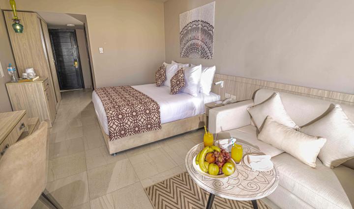 Superior pool view su veličine 35-40m², sobe imaju jedan francuski ležaj i sofu.