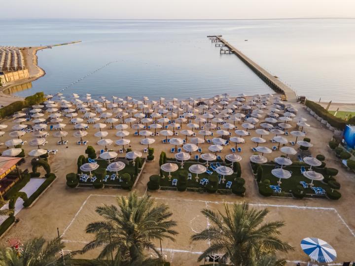 Hotel ima svoju peskovitu plažu sa pontonom dužine 500m, gosti hotela mogu bez doplate da koriste peškire, ležaljke i suncobrane. Jedan manji deo je sa koralnim grebenom a veći deo kupališne zone je plitka voda i preporučuje se korišćenje obuće za plažu.