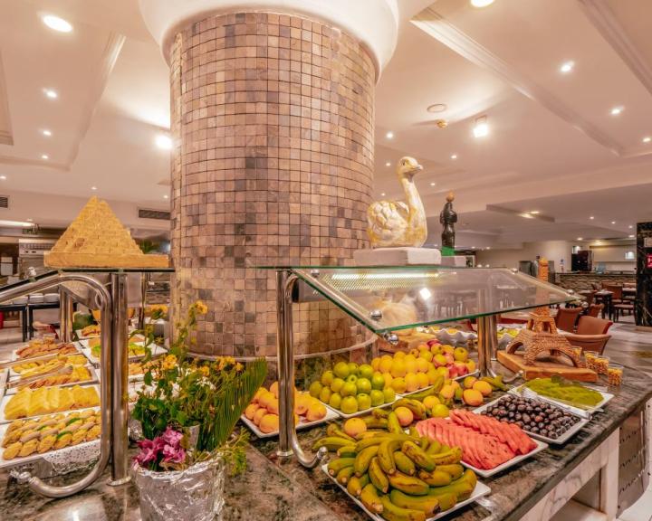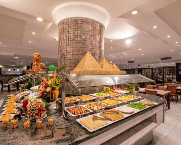Usluga u hotelu je All Inclusive - doručak, ručak i večera (samoposluživanje - izbor više jela po hotelskim pravilima). u konceptu su i užine i lokalna alkoholna i bezalkoholna pića. Hotel u ponudi ima nekoliko restorana - Blue Lagoon (glavni restoran), Cesar (italijanska kuhinja), Palm Island (orijentalna kuhinja) i Kona Kai (azijski restoran). Gostima su na raspolaganju i barovi - Sphinx Lobby Bar, Palm Island Bar, Daiquiri Pool Bar i Oriental Cafe Terrace.