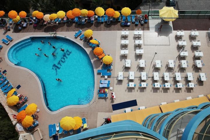 Gosti hotela mogu uživati u korišćenju bazena površine 220 m², dečijeg bazena površine 4 m², bazena sa toboganom površine 40 m² kao i bazena površine 100 m² koji se nalazi iznad plaže. Hotel takođe sadrži i unutrašnji bazen za odrasle površine 80 m² kao i unutrašnji dečiji bazen površine 4 m². Na području bazena i plaže dostupni su suncobrani i ležaljke, kao i usluga plažnih peškira.