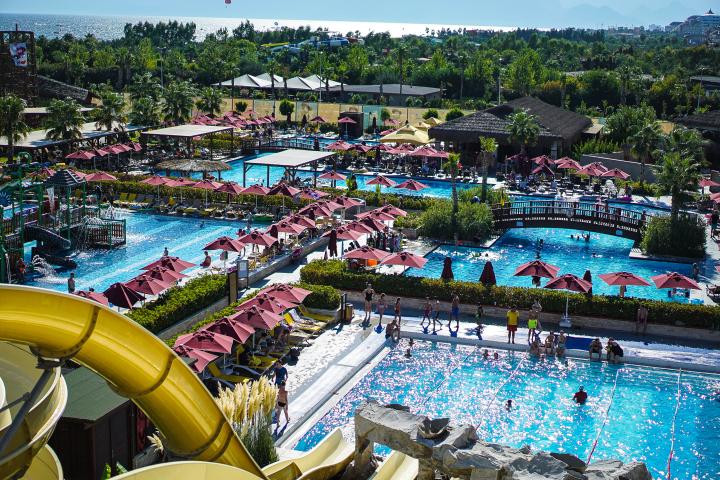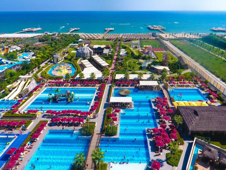 Hotel ima 9 bazena – 7 otvorenih (od čega dva dečija) i 2 zatvorena (od toga jedan dečiji), akva park sa 9 tobogana (6 za odrasle i 3 za decu), teretana/fitnes centar, aerobik, stoni tenis, košarka, odbojka na plaži, mini fudbal, 2 teniska terena (plaćaju se časovi i oprema), dnevne i večernje animacije, bioskop, diskoteka (pića uključena u cenu).