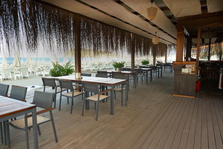 Hotel ima svoj deo na gradskoj peščano-šljunkovitoj plaži, do koje se stiže kroz prolaz ispod bulevara. Plaža je udaljena 250m od hotela.