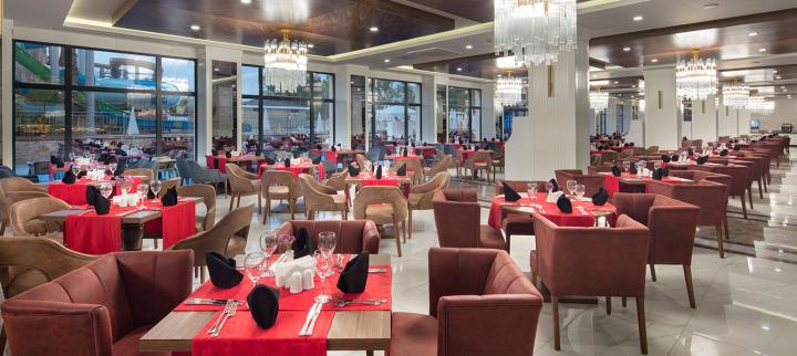 Usluga u hotelu je Ultra all inclusive - samoposluživanje - izbor više jela prema hotelskim pravilima: doručak, ručak, večera, sladoled, užina, turske palačinke u odredjeno doba dana. Koncept obuhvata lokalna alkoholna i bezalkoholna pića.