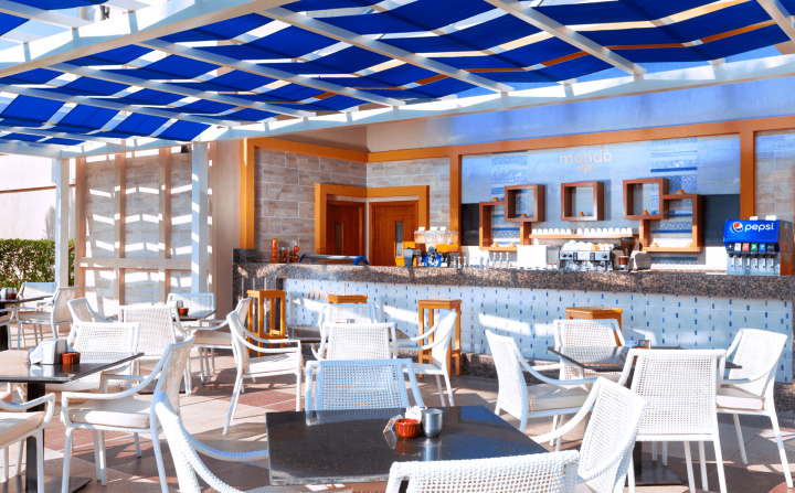 Usluga u hotelu je All Inclusive – doručak, kasni doručak, ručak i večera (samoposluživanje – izbor više jela, po hotelskim pravilima). Hotel u ponudi ima nekoliko à la carte restorana - azijski restoran L' Asiatique, vegetarijanski restoran sa delom sa meksičkom kuhinjom Le Marche, riblji restoran sa italijanskom kuhinjom Culina. Gostima su na raspolaganju i barovi - Dolce Vita Lounge Bar, Mocha Bar, Mondo Cafe, Cinderella Bar, Cappuccino Bar, Columbus Cafe, Culina Bar, Beach Bar i Red Sky Bar. U konceptu su i sladoledi, užine, kolači, lokalna alkoholna i bezalkoholna pića.