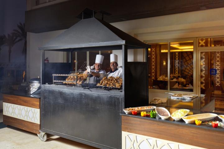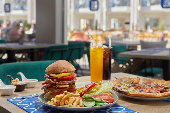 Usluga u hotelu je All Inclusive - doručak, ručak i večera (samoposluživanje - izbor više jela po hotelskim pravilima). U konceptu su užine, sladoled i lokalna alkoholna i bezalkoholna pića. Hotel u ponudi ima dva glavna i nekoliko a la carte restorana - Trattoria (italijanska kuhinja), Wazuzu (azijska kuhinja) i Ethno (lokalni specijaliteti). Gostima su na raspolaganju i barovi - Lobby Bar, Pool Bar, Beach Bar, Chill Bar (za goste 18+), Snack Bar i Happy Moment.