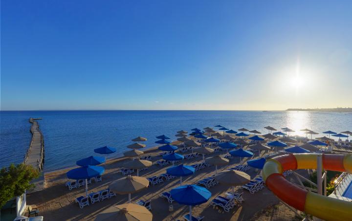 Hotel ima svoju peščanu 250m dugačku plažu sa pontonom dužine oko 400m, jedan manji deo je sa koralnim grebenom a veći deo je zona sa plitkom vodom. Upotreba suncobrana i ležaljki je besplatna za goste hotela.