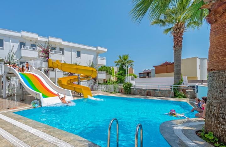 Hotel zauzima površinu 6500m2, ima ukupno 166 soba (137 standardnih soba, 9 suite soba, 1 soba za osobe sa posebnim potrebama i 19 large soba). Smešten je u prelepom prirodnom ambijentu i u potpunosti je urađen u duhu bodrumske arhitelture (belo-plavo). Gostima su na raspolaganju glavni restoran, 4 bara, fitness centar i Spa centar. Internet je dostupan samo kod recepcije i bazena.