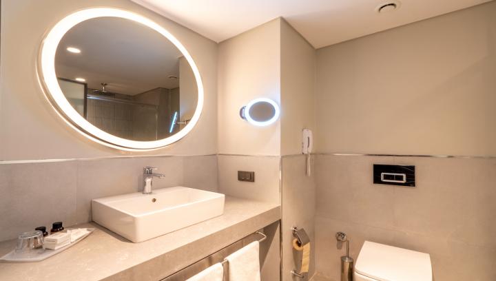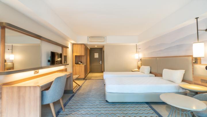 Hotel raspolaže sa 244 smeštajne jedinice. Sve sobe su opremljene balkonom ili terasom, SAT TV-om, telefonom, klima uređajem, mini barom (dnevno se dopunjuje vodom), sefom i fenom. Sve sobe imaju pogld na vrt.
