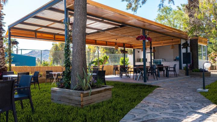 Hotel se nalazi na svojoj 300m dugoj peščano-šljunkovitoj plaži koja ima plavu zastavicu. Upotreba suncobrana i ležaljki je besplatna. Peškiri se dobijaju uz depozit.