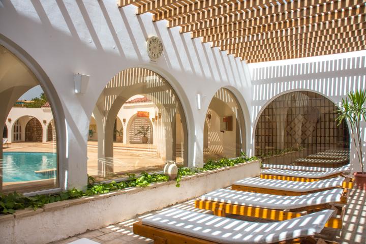 Nalazi se u blizini Abidos marine i oko 300m od golf terena u El Guni na svojoj privatnoj plaži.