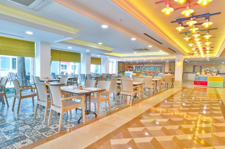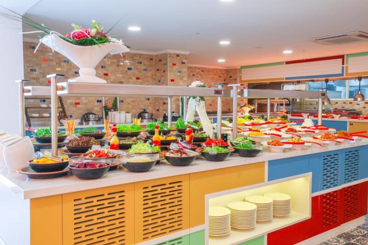 Usluga je Ultimate All Inclusive - samoposluživanje (izbor više jela) u glavnom restoranu: doručak, ručak i večera. U koncept je uključen dečiji meni u glavnom restoranu. Jednom u toku boravka od minimum 7 dana je besplatno korišćenje à la carte restorana uz rezervaciju dan ranije (italijanski i turski) dok se riblji dodatno naplaćuje.