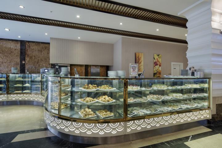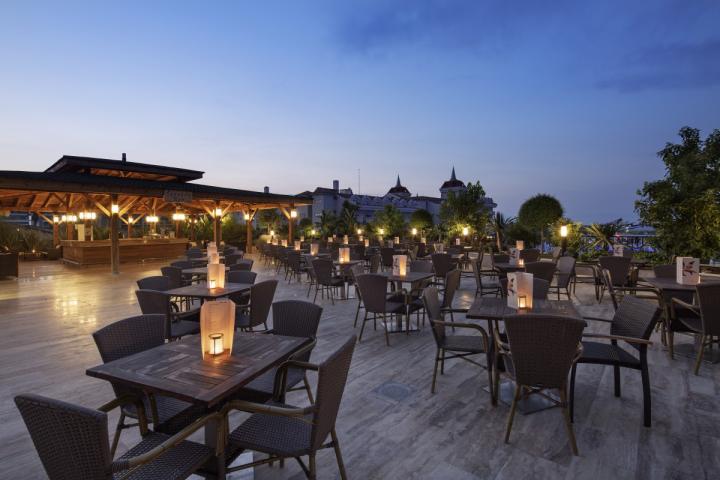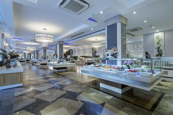 Gostima su na raspolaganju pored glavnog restorana, 5 à la carte restorana (turski, orijentalni, riblji, italijanski i specijaliteti od mesa besplatno jednom u toku boravka), nekoliko baraova sa užinama u različito doba dana, poslastičarnica, nekoliko barova (Lobby, Terrace, Arena, Pool , Aqua Snack, Irish, Sunset, Atlantis, Prestige, Beach, Detox, Disco).