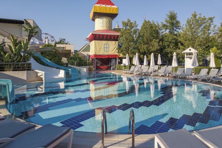 Hotel poseduje 1 veliki otvoreni bazen, 2 otvorena bazena sa toboganima, zatvoreni bazen, relax bazen, dečiji bazen, dnevne i večernje animacije i programi, diskoteka, odbojka na plaži, fitness centar, stoni tenis, luna park, aerobik, pikado, teren za odbojku, teniski teren, vaterpolo, gimnastika u vodi, step.