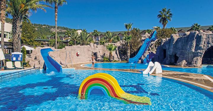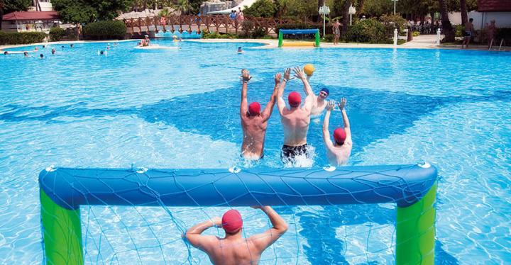 U hotelu postoji 8 bazena od čega su 5 za odrasle i 3 za decu, dečiji bazen sa toboganima ( 6 za decu i 3 za bebe). Pored bazena postoji i 9 teniskih terena, košarkaški i odbojkaški tereni, fudbalski tereni, vaterpolo, odbojka na pesku, stoni tenis, pikado, aerobic, fitness centar i boćanje, razne dnevne i večernje animacije, koncerti i muzika uživo.