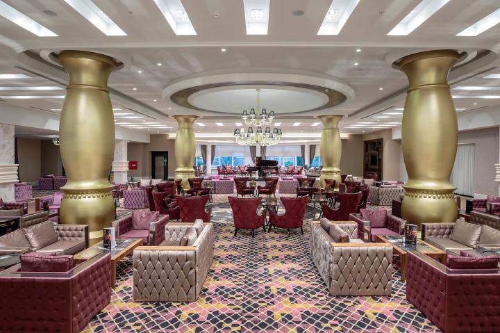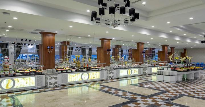 Gostima su na raspolaganju jedan glavni restoran Babil, 2 restorana za užine (Arena snack, Pool snack). Pored toga postoje i 4 a’ la carte restorana (Vivaldi, Muzoyaki Sushi, The Mariner fish, Sofra Turkish) i svi rade od 19:00h – 22:00h. Hotel poseduje i 9 barova (Lobby Piano, Pool, Arena beach, Captain's bar, Patisserie monet, Recharge disco, Muco coffee house, Lobby tea house, Dobedan beach bar, Dobedan lounge bar).