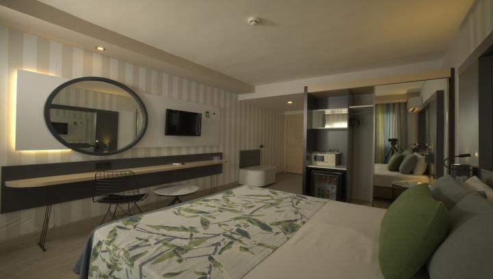 Family sobe Sastoji se iz dve spavaće sobe (jedna sa francuskim krevetom, druga sa 2 single kreveta i sofom na razvlačenje). Pogodna je za do 4 odrasle osobe ili 4 odrasle osobe i 1 dete. Površina: 35–40 m², dostupna sa pogledom na more ili kopno.