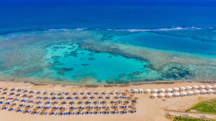 Hotel ima svoju plažu dužine 600m sa postepenim ulaskom u more sa koralnim grebenom što privlači veliki broj zaljubljenika u podvodni svet.