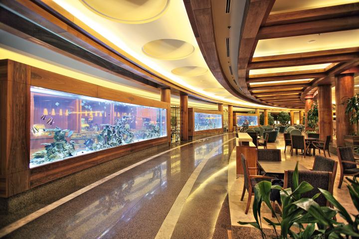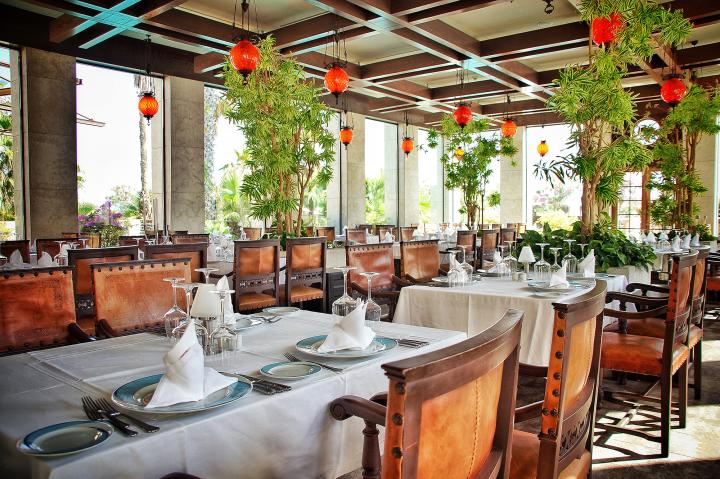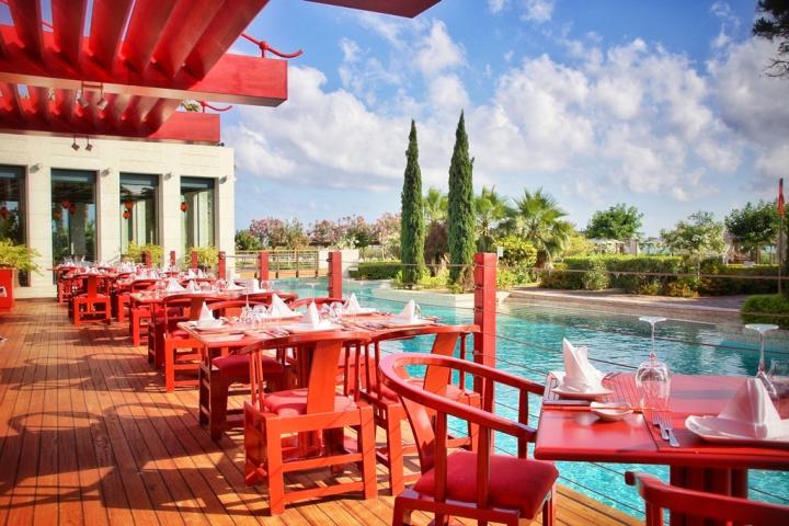 Hotel ima glavni restoran “Tetrasomia”, 5 a' la carte restorana (Le Jardin au Printemps - francuski, AKA - japanski, Serenity Steak House , River Landing - riblji, La Taratoria Romana - italijanski), nekoliko snack barova ( La Trattoria, Route 66 , Traces Beach Snack), diskoteku, karaoke bar, "Arena" amfiteatar.