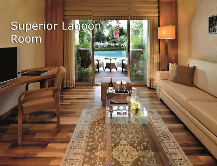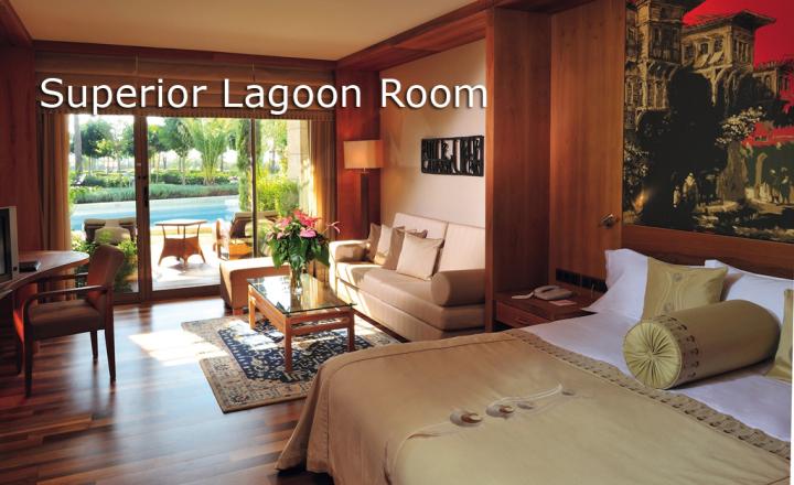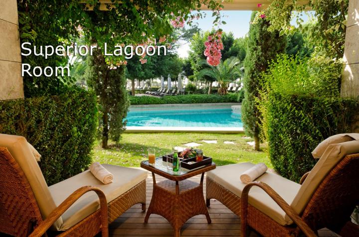 Superior Lagoon soba: nalaze se u glavnoj zgradi i površine su 39m², imaju pogled na bazen. Poseduju jednu spavaću sobu sa francuskim ležajem ili dva odvojena kreveta, sofa, kupatilo ( jacuzzi i tuš kabina ), terasa sa direktnim pristupom bazenu.