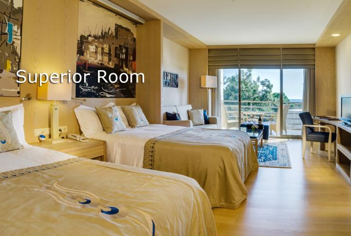 Superior soba: nalaze se u glavnoj zgradi i površine su 39m², imaju pogled na vrt ili delimično na more. Poseduju jednu spavaću sobu sa francuskim ležajem ili dva odvojena kreveta, sofa, kupatilo ( jacuzzi i tuš kabina ), balkon ili terasu.