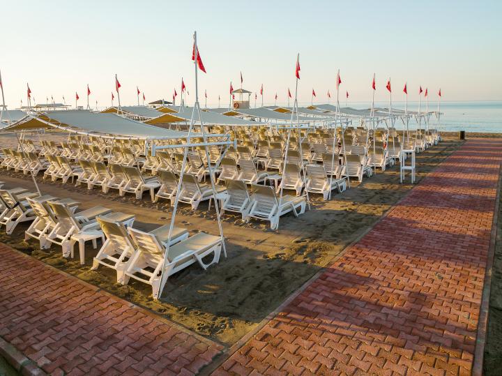 Hotel je udaljen oko 200m od svog dela plaže. Gostima je dostupan shuttle prevoz do plaže. Korišćenje ležaljki i suncobrana je bez doplate, peškiri za plažu se dobijaju uz karticu.