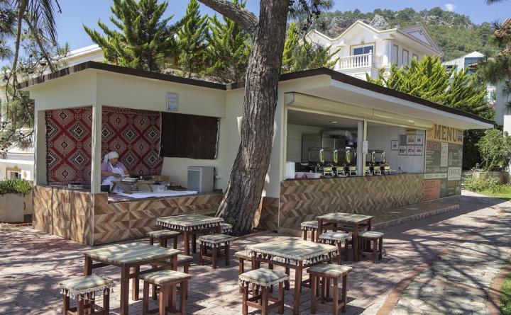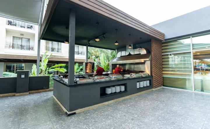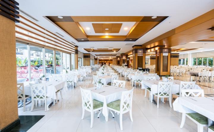 Usluga u hotelu je All inclusive, samoposluživanje, izbor više jela po hotelskim pravilima. U glavnom restoranu se poslužuju: doručak, kasni doručak, ručak, večera, ponoćna supa i užina.