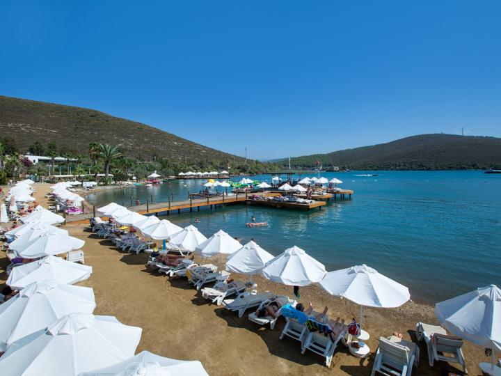Hotel ima svoju 250m dugu peščano-šljunkovitu plažu sa dokom. Upotreba suncobrana i ležaljki je besplatna. Na plaži postoji deo koji je isključivo za odrasle (adult only), kao i deo za nepušače.