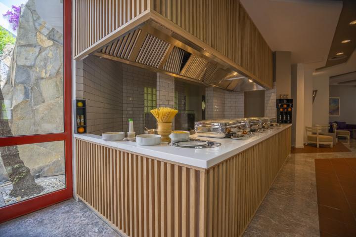 U hotelu je usluga Ultra All inclusive - samoposluživanje, izbor više jela u glavnom restoranu "Lavanta"– doručak, ručak, večera. Gostima su na raspolaganju i à la carte restorani turske i internacionalne kuhinje kao i gril restoran, a mogu da uživaju i u snack mini buffet konceptu u okviru glavnog restorana. Pored restorana tu su i Sunset bar, Lobby bar (pruža uslugo 24h ali alkoholna pića do 02:00), Bar 94 i Club Laguna (diskoteka za one koji žele da se zabavljaju do jutarnjih časova-radi određenim danima u nedelji, DJ posle 23:00). U koncept usluge su uključeni obroci u glavnom restoranu i užina, domaća alkoholna i bezalkoholna pića. Gostima će biti dat besplatan vaučer za korišćenje jednog à la carte restorana nakon ostvarenih 7 noćenja.