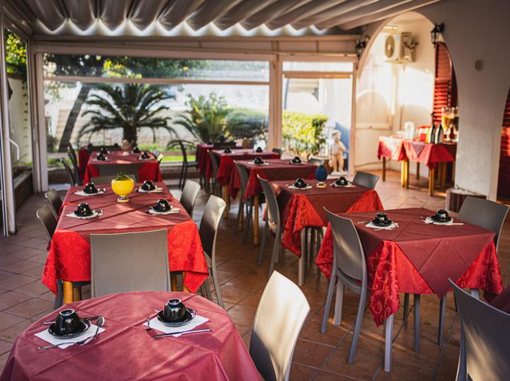 Usluga u hotelu je na bazi noćenja sa doručkom (BB). Doručak se služi u italijanskom ili kontinentalnom stilu, na bazi samoposluživanja. Van doručka, voda i ostala pića u restoranu i baru dostupna su uz doplatu.