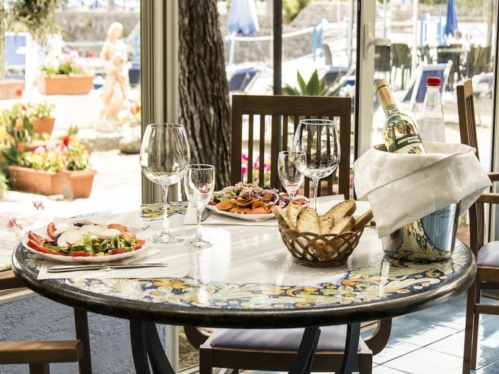 Usluga u hotelu je na bazi noćenja sa doručkom (BB) ili polupansiona (HB). Obroci se služe po principu: doručak - italijanski ili kontinentalni stil, večera - samoposluživanje sa izborom salata i set menijem koji uključuje predjelo, glavno jelo i desert. Voda i ostala pića dostupni su uz doplatu. U okviru hotela nalaze se lobi bar i restoran, gde se uz doplatu poslužuju jela italijanske i međunarodne kuhinje.