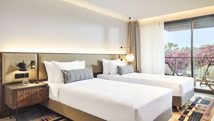 Hotel raspolaže sa 216 smeštajnih jedinica. Sve sobe imaju balkon, fen za kosu, kupatilo sa tuš kabinom, kozmetiku u kupatilu, bademantil i papuče, klimu, LCD TV, telefon, Wi-Fi internet, mini bar, sef, ketler.