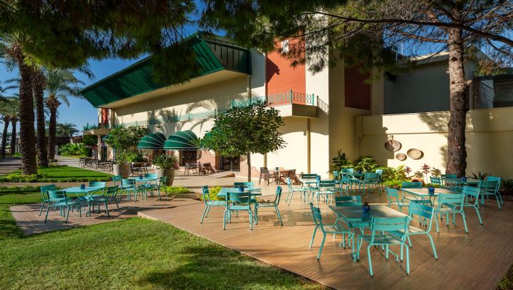 Hotel u svojoj ponudi ima aqua park otvoren 2018. godine, bazen sa animacijama, Oase bazen, veliki bazen (1.384m²), zatvoreni bazen, 3 dečija bazena i još jedan zatvoreni, dnevne i večernje animacije i programi, diskoteka, tenis, stoni tenis, badminton, odbojka na plaži, kanu i surf uz licencu, mini fudbal, mini golf, gimnastika, step, pilates, streljaštvo, boćanje, pikado, vaterpolo, aerobic, časovi trbušnog plesa, muzički program, diskoteka, Wi-Fi internet (ograničene brzine i broja korisnika).