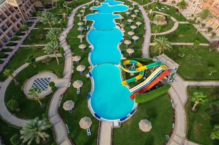Hotel ima ukupno 5 bazena (glavni bazen je podeljen u 4 dela), akva park sa 4 tobogana i dečiji bazen, odbojku na plaži, stoni tenis, šah, pikado, gimnastika u vodi i ostale animacije.