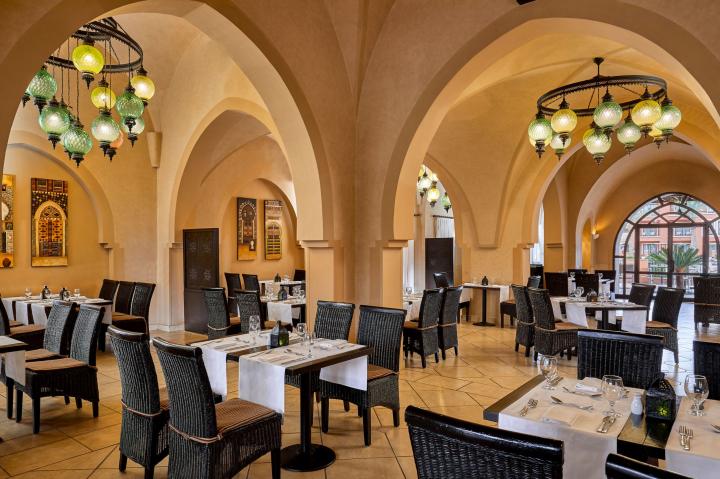 Usluga u hotelu je All Inclusive - doručak, ručak i večera (samoposluživanje - izbor više jela po hotelskim pravilima). U konceptu su užine i lokalna alkoholna i bezalkoholna pića. Pored glavnog restorana El Khan, gostima su na raspolaganju i nekoliko barova(El Kholkhal, Narguila bar) i à la carte restorana(Nino's - italijanska kuhinja, Sofra - libanska kuhinja, Momo - azijska kuhinja).