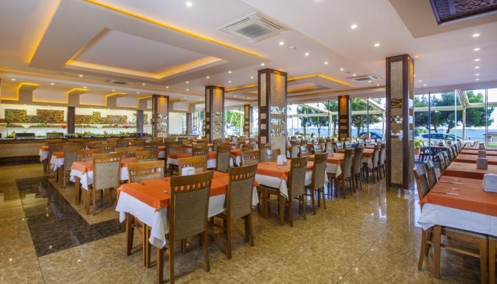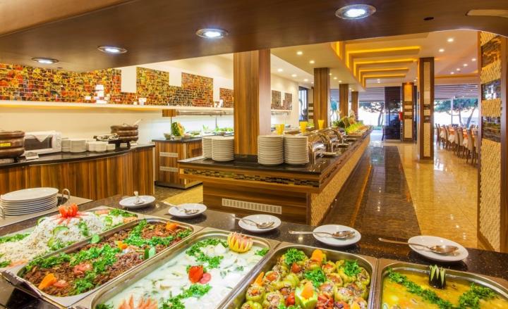 Hotel pruža uslugu All Inclusive - samoposluživanje - izbor više jela po hotelskim pravilima u glavnom restoranu: doručak, ručak, večera. U konceptu su lokalna alkoholna i bezalkoholna pića od 10h do 23h.