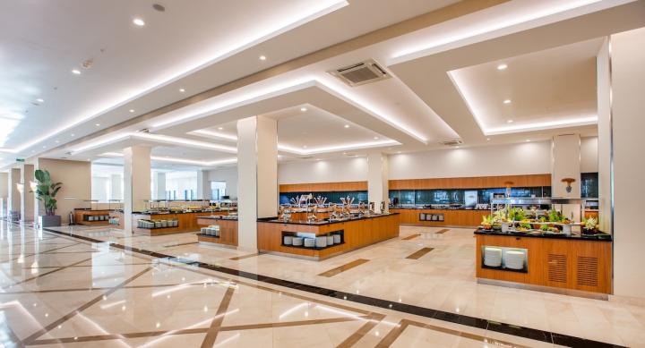 Glavni restoran nudi bogate obroke tokom celog dana, uključujući doručak, ručak, večeru i noćni bife, uz dijetalne i dečije menije. Uz to, gosti mogu uživati u specijalizovanim a la carte restoranima kao što su Roka, koji se fokusira na ribu i morske plodove, Zeytin sa jelima iz svetskih kuhinja i Safran, koji nudi turske specijalitete.