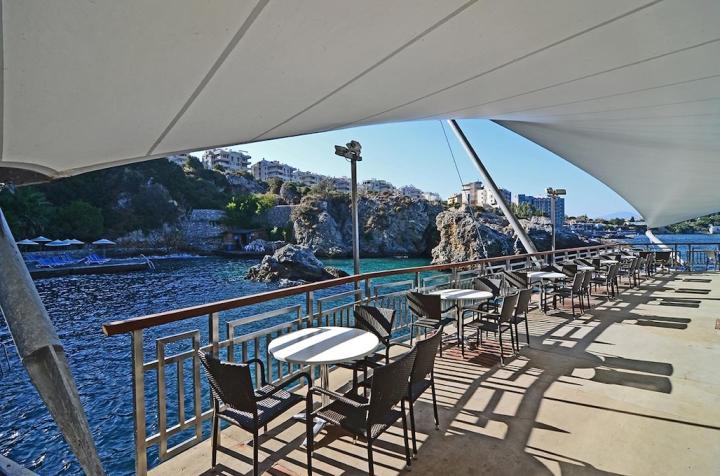 Otvoren je cele godine, odlična usluga i pogled na ostrvo golubova i Kušadasi.
