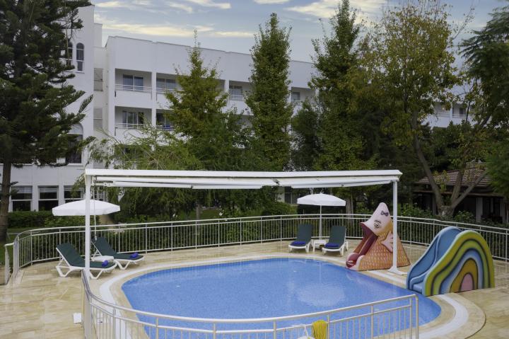 Tri otvorena bazena, relax bazen (16+), bazen sa tri tobogana, dva dečija bazena, fitnes, teniski tereni, zabavni programi tokom dana pored bazena i na plaži, večernji programi.