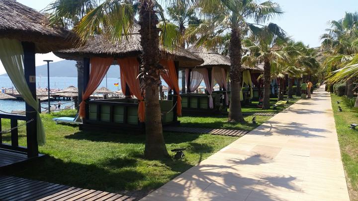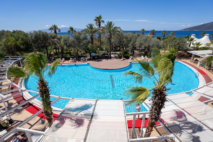 Hotel se nalazi u mestu Yalıçiftlik, na svojoj plaži, oko 40km od aerodroma i oko 16km od centra Bodruma.