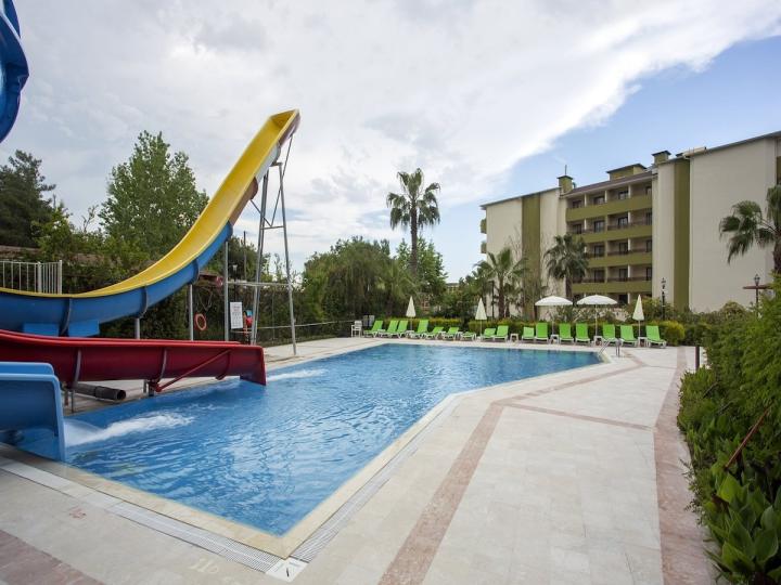 Hotel se nalazi na oko 25 km od Alanje i preporučuje se gostima koji žele da borave u mirnijem delu, u neposrednoj blizini privatne peščane plaže, na kojoj su ležaljke i suncobrani dostupni gostima bez doplate. Sa skromnijim standardom pet zvezdica, hotel predstavlja pristupačnu opciju smeštaja za one koji traže udoban boravak u mirnom okruženju.