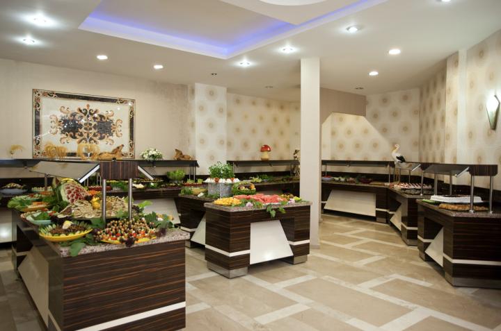 Usluga u hotelu je All Inclusive - samoposluživanje - izbor više jela po hotelskim pravilima u glavnom restoranu: doručak, kasni doručak, ručak, užina, večera, ponoćna supa. U koncept su uključena lokalna alkoholna i bezalkoholna pića u toku obroka i u baru pored bazena, kao i topli napici ili kolači u različito doba dana. Bar na plaži ja dostupan gostima tokom dana.