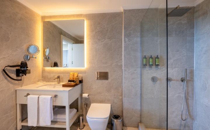 King suite zauzima površinu od 120m²  nalazi se u glavnoj zgradi i ima pogled ka moru. Apartman obuhvata dve spavaće sobe, jedna sa francuskim ležajem i jedna sa dva odvojena kreveta, dnevni boravak, garderobu, dva kupatila, odvojeni WC i balkon.