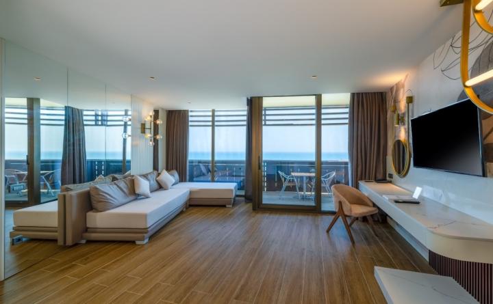 Family Suite Sea View zauzima površinu od 64 m² nalazi se u glavnoj zgradi i ima pogled ka moru.  Sastoji se od spavaće sobe sa francuskim ležajem i dnevne sobe sa sofom. Apartman ima dva kupatila i balkon.