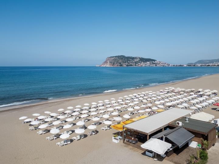 Hotel poseduje svoju privatnu peščano šljunkovitu plažu koja je udaljena 100 m od hotela i do nje se dolazi podzemnim tunelom. Suncobrani, ležaljke i peškiri za plažu su besplatni.