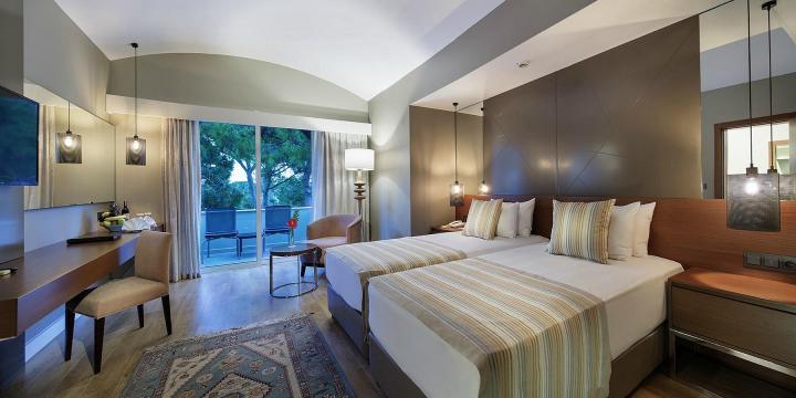 Hotel ima 363 smeštajne jedinice od kojih su 302 u glavnoj zgradi, 56 vila i 5 VIP vila. U hotelu se takođe nalaze i 3 sobe namenjene osobama sa posebnim potrebama. Sve sobe imaju klima uređaj, SAT LED TV, mini bar, sef, fen za kosu, ketler, Wi-Fi internet.