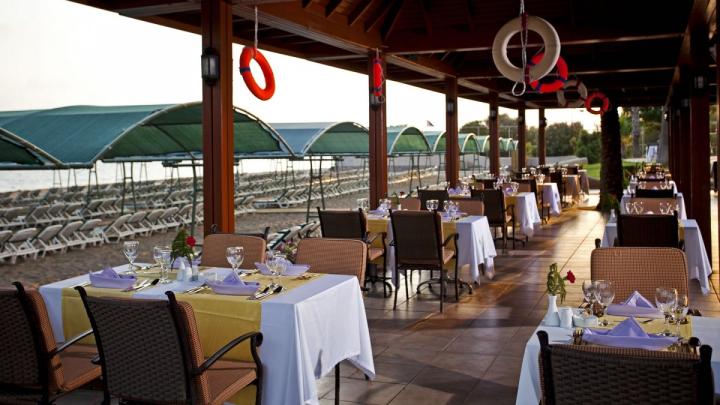 Usluga u hotelu je Ultra All Inclusive - doručak, kasni doručak, ručak, večera (samoposluživanje - izbor više jela po hotelskim pravilima). Hotel u ponudi ima dva a la carte restorana (besplatni jednom u toku boravka uz prethodnu rezervaciju) - Dolce Vita (italijanska kuhinja) i Dragon (dalekoistočna kuhinja) kao i nekoliko barova - Lobby Bar, Aspendos Bar, Pool Bar, Beach Bar, Aqua Bar i Disco Bar. U koncept su uključeni sladoled, užine, gozleme, krofne, kolaći, piza, lokalna alkoholna i bezalkoholna pića.